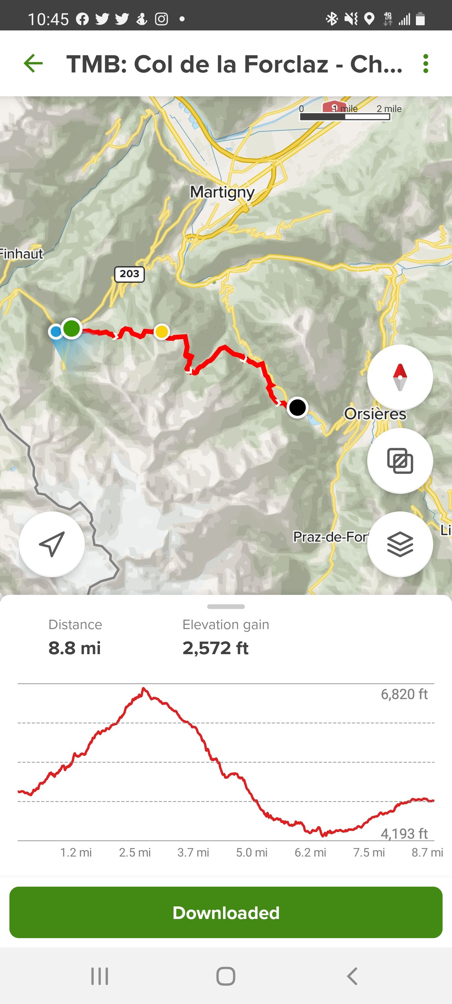 I stayed at the Grande Ourse in Trient last night. It is a step up from a dormitory. The rooms are nice, private with shared showers and facilities down the hall. Even though the place was full of trekkers it was not crowded. Food was just ok here but beyond that I had a comfortable stay. When you hike for 13 to 15 miles a day and have large ascent and descent you are tired enough to just want to sleep anyway. This really being the first night I had a lot of butterflies about the next few days. Hiking alone in a country that is new to you and a trail system that you are unfamiliar with may give most people some anxiety. For me I feel really comfortable with my outdoor ability and trail finding but still anxiety crept in. I texted a friend who is an avid hike/climber and after a few words my mind was at ease. The next day's hike was long but not that demanding when it came to the ascent.